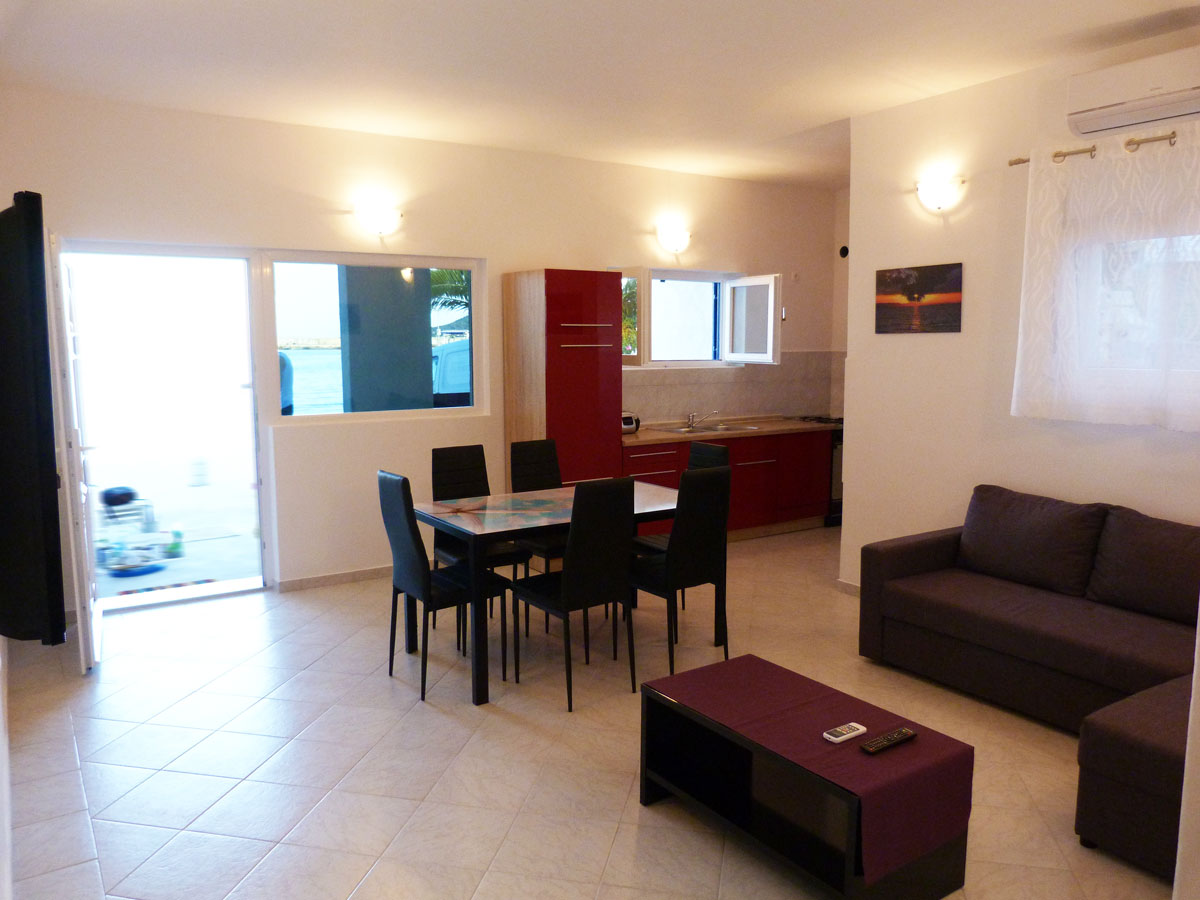 Brand new apartment five meters from the beach. Comfortable for a family of six. You can have your morning coffe and your daily meals practicly on the beach.